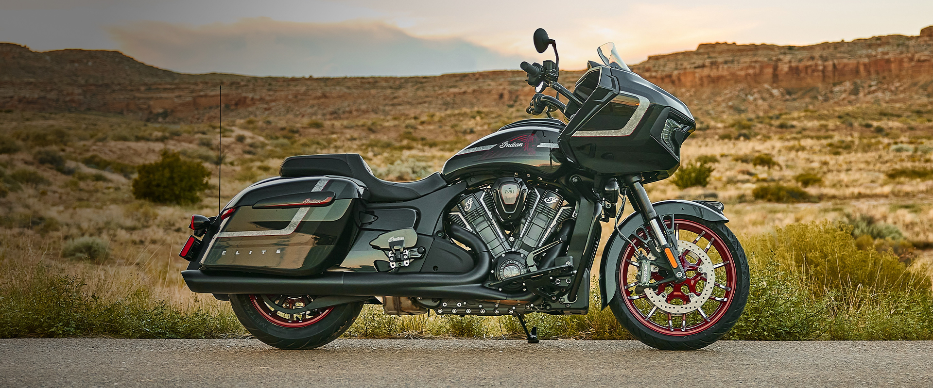 The Indian Challenger Elite is a limited-edition performance bagger with bold styling, a 122 hp PowerPlus engine, Smart Lean Tech, and premium features like adjustable suspension and a 400-watt audio system. Only 325 units made worldwide