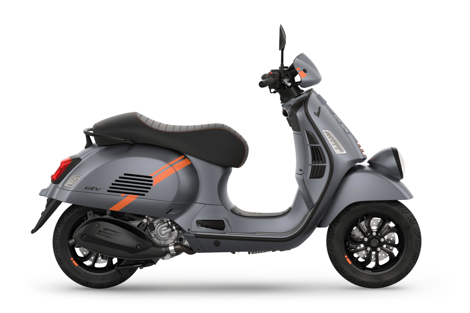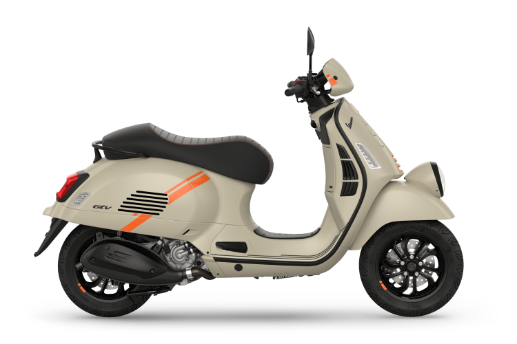 The Vespa Gtv portrays a no-nonsense attitude though unique details, innovative solutions and dynamic character. The 310-cc Euro 5+ engine makes every ride agile and efficient while also expressing the scooter’s sporty spirit.