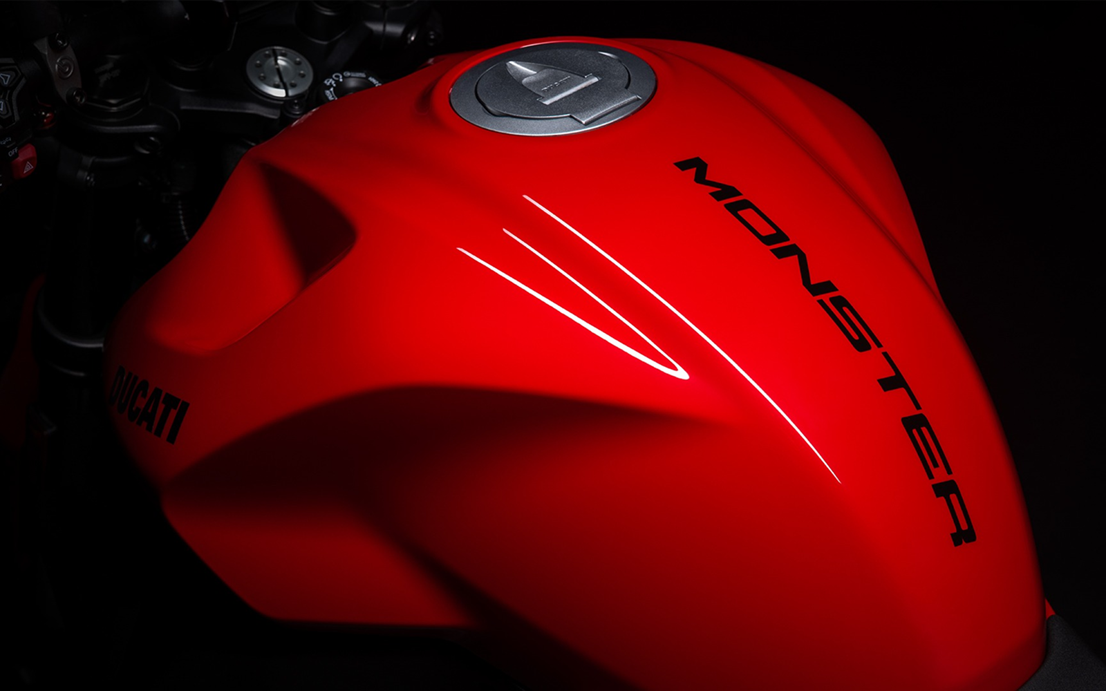 The Monster SP takes the 2022 colors of the official team’s Desmosedici GP, mounts Öhlins suspensions and Termignoni homologated silencer, Brembo Stylema® calipers and Pirelli Diablo Rosso IV tires. True sporty equipment that will make you fall in love with the new Monster SP, available also in depowered version.