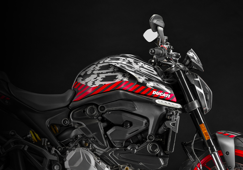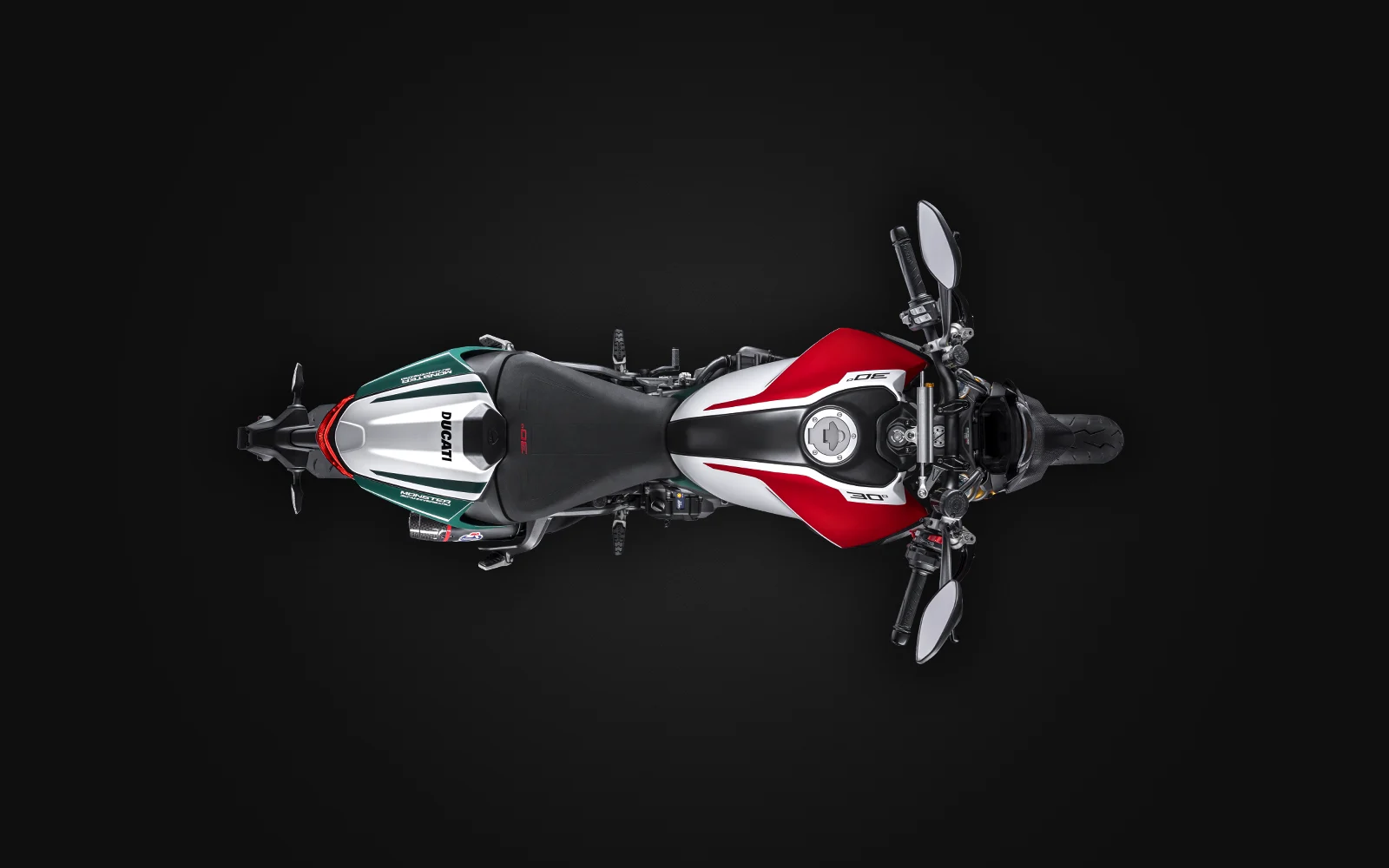 The Monster SP takes the 2022 colors of the official team’s Desmosedici GP, mounts Öhlins suspensions and Termignoni homologated silencer, Brembo Stylema® calipers and Pirelli Diablo Rosso IV tires. True sporty equipment that will make you fall in love with the new Monster SP, available also in depowered version.