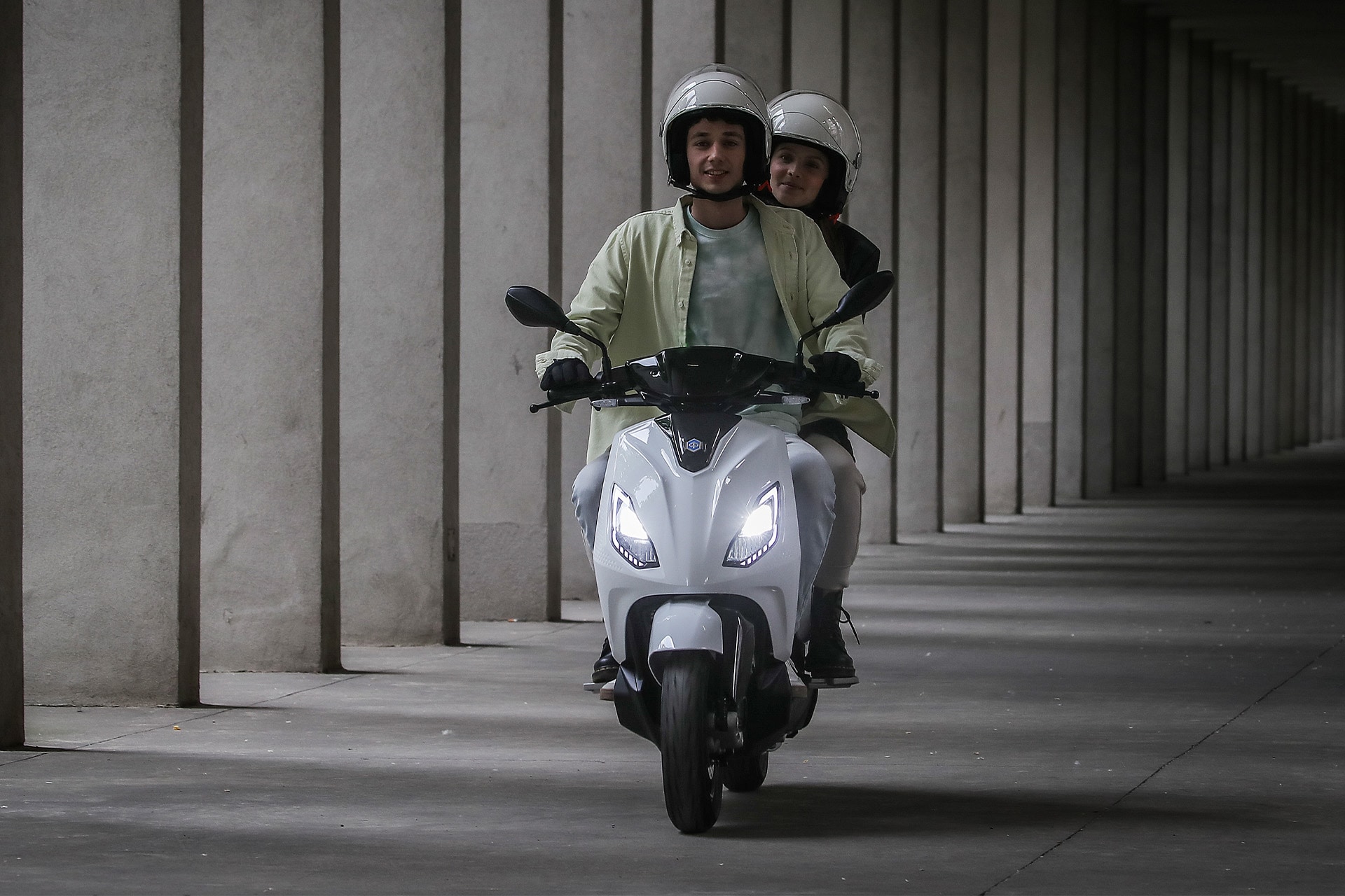 The scooter is powered by an electric hub motor, developed by Piaggio. The 1 version is fitted with a new 2.2 and 3 kW electric motor for a significant increase in acceleration, while the 1 Active model delivers power of 2 kW
